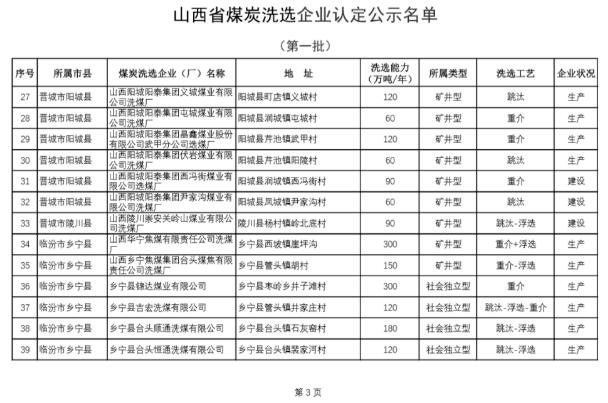 日前,省能源局公布了第一批山西煤炭洗選企業(yè)認(rèn)定名單,涉及7個(gè)地市65家企業(yè)入選。
