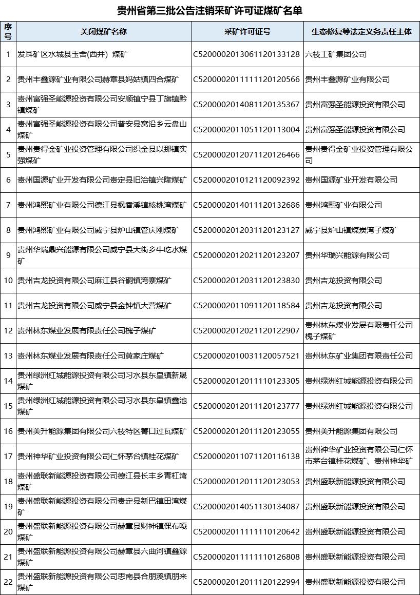 近日,貴州省能源局、省自然資源廳印發(fā)了《關(guān)于已關(guān)閉煤礦注銷采礦許可證的公告》。