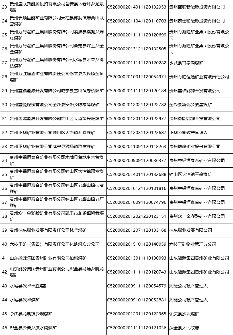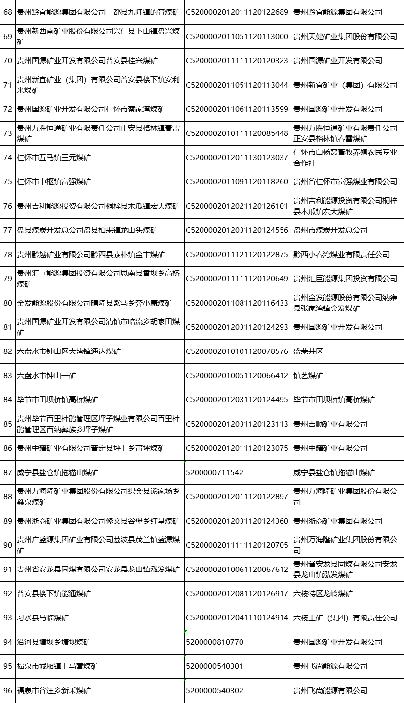 公告指出,根據(jù)《礦產(chǎn)資源開(kāi)采登記管理辦法》《國(guó)土資源部關(guān)于完善礦產(chǎn)資源開(kāi)采審批登記管理有關(guān)事項(xiàng)的通知》《自然資源部辦公廳關(guān)于政策性關(guān)閉礦山采礦許可證注銷有關(guān)工作的函》《貴州省自然資源廳 貴州省能源局關(guān)于已關(guān)閉煤礦限期注銷采礦許可證的公告》,對(duì)已按照《省人民政府關(guān)于煤炭工業(yè)淘汰落后產(chǎn)能加快轉(zhuǎn)型升級(jí)的意見(jiàn)》(黔府發(fā)〔2017〕9號(hào))、《省人民政府辦公廳關(guān)于轉(zhuǎn)發(fā)省能源局等部門(mén)貴州省煤礦企業(yè)兼并重組工作方案(試行)的通知》(黔府辦發(fā)〔2012〕61號(hào))要求完成關(guān)閉的發(fā)耳礦區(qū)水城縣玉舍(西井)煤礦等96個(gè)煤礦予以注銷采礦許可證并公告,責(zé)任主體要履行礦山關(guān)閉后相關(guān)生態(tài)修復(fù)等法定義務(wù),對(duì)于未按承諾完成法定義務(wù)的納入失信聯(lián)合懲戒。