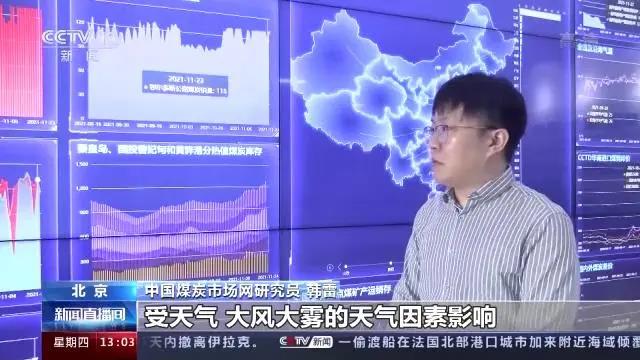 中國(guó)煤炭市場(chǎng)網(wǎng)研究員 韓雷:這兩天港口受大風(fēng)大霧影響出現(xiàn)了階段性的封航,但是北方港口的煤炭庫(kù)存持續(xù)在上升,目前的港存量約2150萬(wàn)噸。