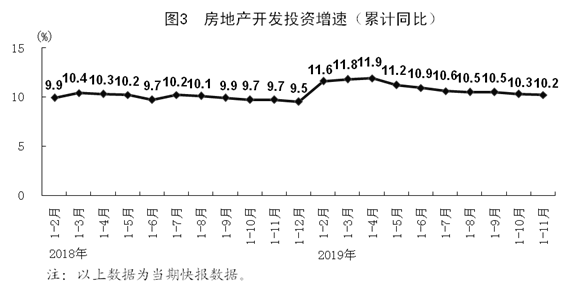 1-11月份,全國固定資產(chǎn)投資(不含農(nóng)戶)533718億元,同比增長5.2%,增速與1-10月份持平。分領(lǐng)域看,基礎(chǔ)設(shè)施投資同比增長4.0%,制造業(yè)投資增長2.5%,房地產(chǎn)開發(fā)投資增長10.2%。全國商品房銷售面積148905萬平方米,同比增長0.2%;商品房銷售額139006億元,增長7.3%。分產(chǎn)業(yè)看,第一產(chǎn)業(yè)投資下降0.1%,第二產(chǎn)業(yè)投資增長2.4%,第三產(chǎn)業(yè)投資增長6.7%。民間投資303786億元,增長4.5%。1-11月份,高技術(shù)產(chǎn)業(yè)投資同比增長14.1%,快于全部投資8.9個百分點,其中高技術(shù)制造業(yè)和高技術(shù)服務(wù)業(yè)投資同比分別增長14.8%和13.1%。社會領(lǐng)域投資同比增長12.6%,快于全部投資7.4個百分點,其中教育,文化、體育和娛樂業(yè)投資分別增長17.5%和13.4%。生態(tài)保護和環(huán)境治理業(yè)、環(huán)境監(jiān)測及治理服務(wù)投資同比分別增長36.3%、30.6%,分別快于全部投資31.1、25.4個百分點。