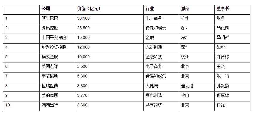 榜單顯示,阿里巴巴以3.8萬億市值位列第一,騰訊以2.9萬億市值位列第二,平安保險以1.5萬億市值位列第三。