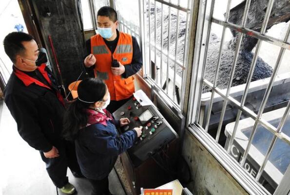 2020年3月5日,在四川省達(dá)州市達(dá)竹礦務(wù)局,工作人員(女)在操作機(jī)械設(shè)備為“達(dá)州直達(dá)武昌10小時(shí)精煤專列”裝運(yùn)精煤。