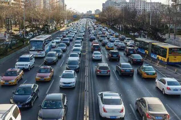 △行駛在北京街道上的車(chē)輛