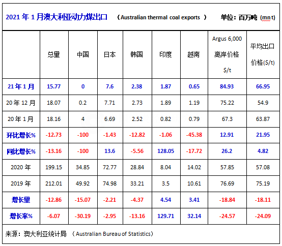 今年1月份,由于受中國非正式限制澳大利亞煤炭進口的持續(xù)影響,澳大利亞對中國動力煤出口量仍為零,為自2000年以來的二十多年首次出現(xiàn)的市場現(xiàn)象。